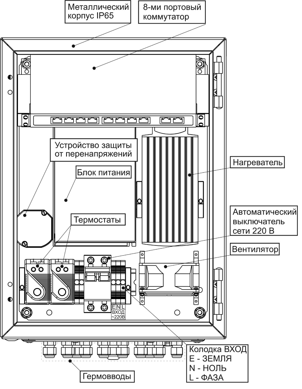 SKAT PoE-8E-1G-1S исп.5 оснащён системой термостабилизации с помощью термостатов, позволяющим поддерживать температуру воздуха внутри корпуса не ниже +5°С при отрицательных температурах окружающей среды.
