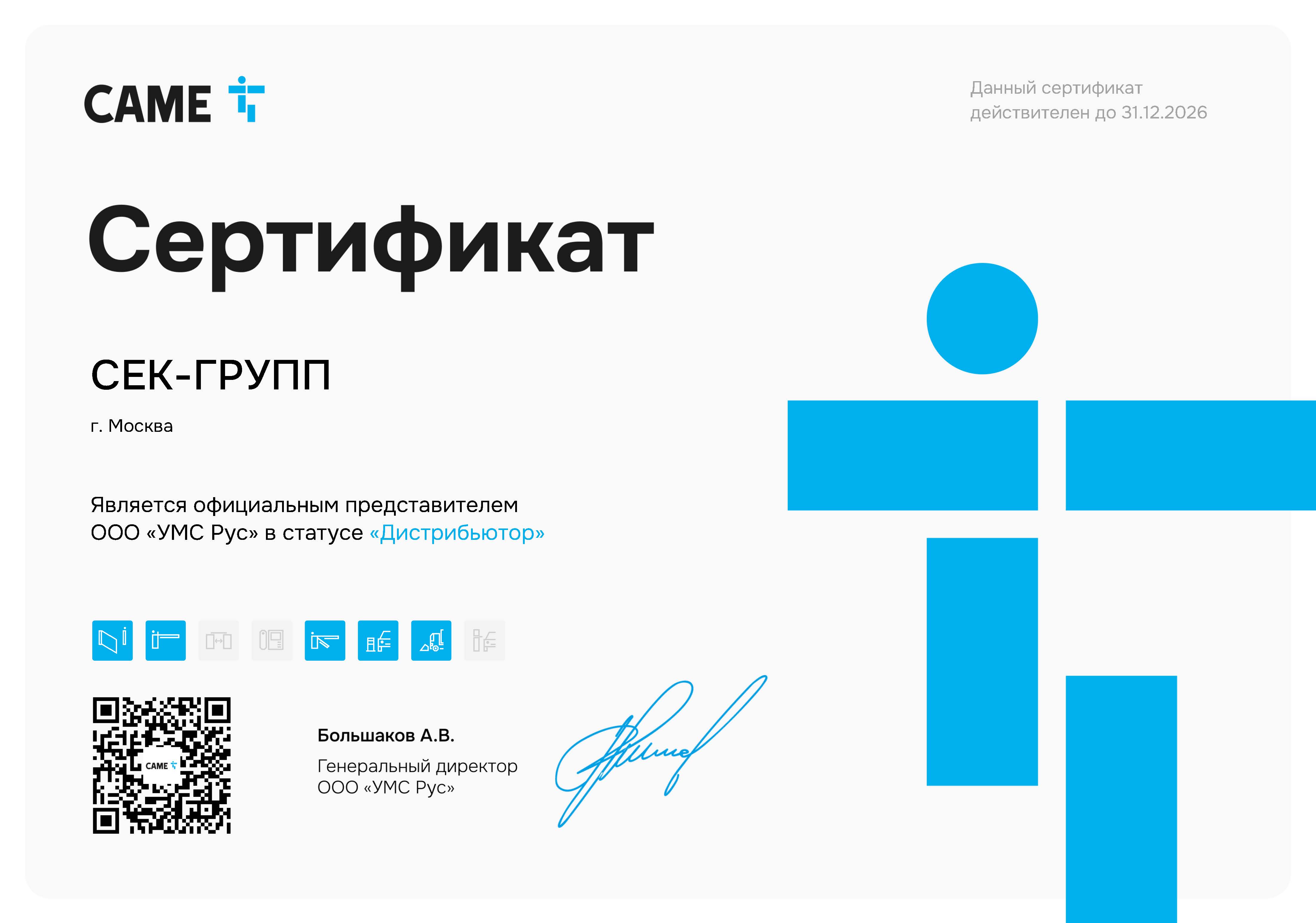 Купить CAME 119RIC002 в интернет-магазине СЕК-ГРУПП в Москве: Черницынский проезд, д.3, стр.1 (метро Щелковская). Доставка по России.