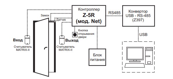 IronLogic Z-5R (мод. Net) - Сетевой контроллер СКУД, Количество ключей: 2024 шт.; Количество запоминаемых событий: 2048 шт.; Типы записываемых ключей: простой, мастер, блокирующий; Интерфейс связи со считывателем: Dallas TM (iButton) Наличие перемычки для выбора типа замка: есть; Тип исполнительного устройства: электромеханический / электромагнитный замок; Световая и звуковая индикация режимов работы: есть; Установка длительности открывания замка: от 0 до 25,5 c; Выход: МДП транзистор 1шт.; Интерфейс связи: RS-485; Удаленность контроллера по RS-485: до 1200 м; Напряжение питания: 12V DC; Ток потребления: 30мA; Ток коммутации: 5А; Защита от неправильного включения: есть; Подключение 2 считывателя; Рабочая температура: -30°С +40°С; Габаритные размеры: 65х55х12 мм; ABS пластик; Цвет корпуса: белый.
