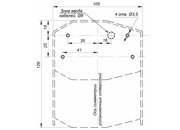 Рисунок - схема разметки отверстий для монтажа считывателя RMC01